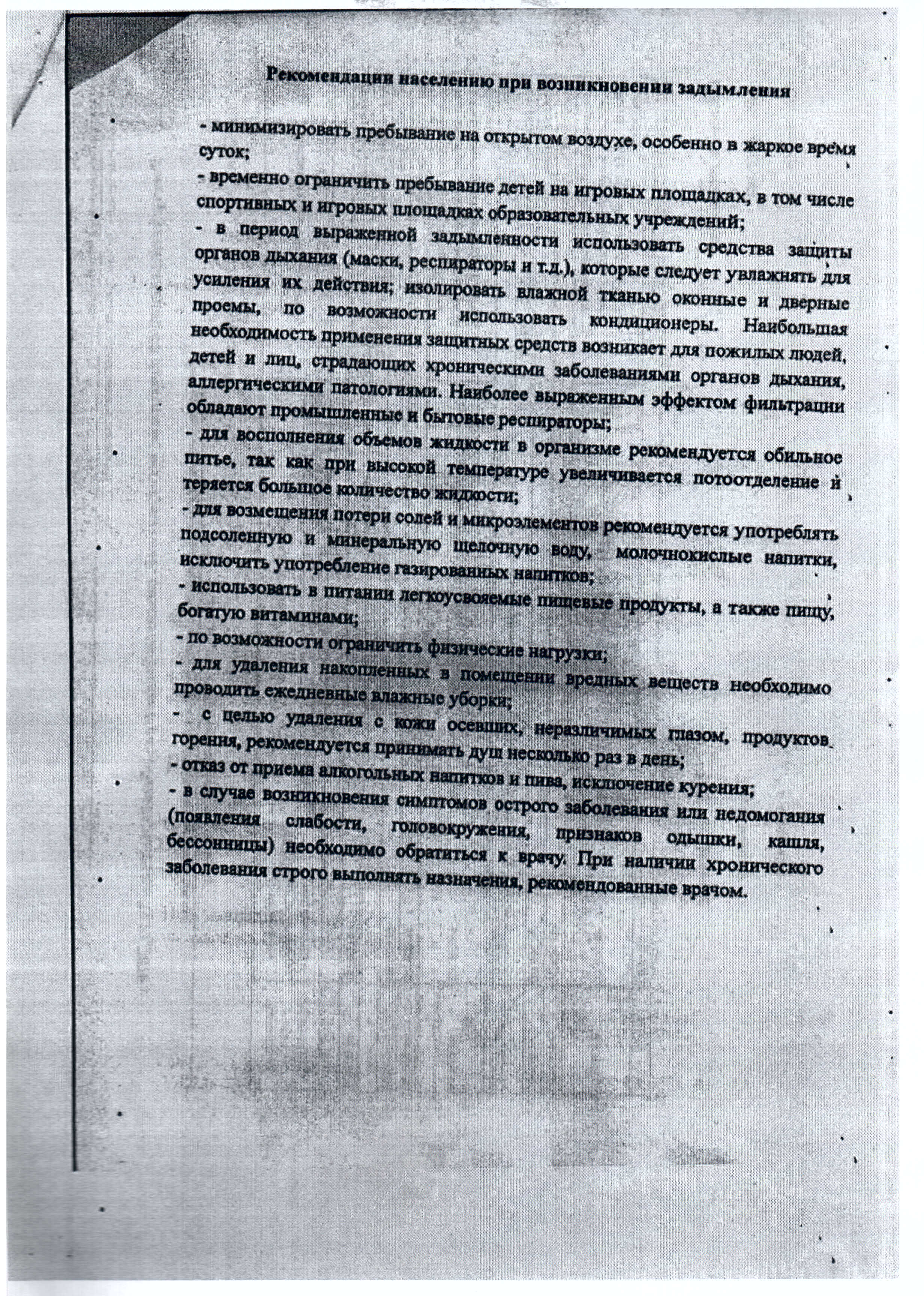 Рекомендации населению при возникновении задымления